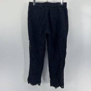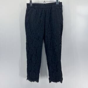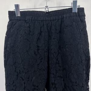 J. Crew Black Lace Easy Pants Pull On Cropped Elastic Waist Size 4 Petite