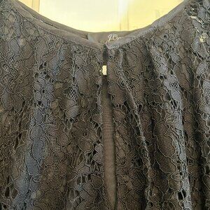 JCrew short sleeved black lace top with button closure at neckline. New with tags. It was too long on my frame.