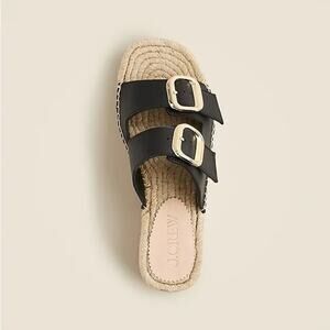 Introducing J CREW’S new collection of made-in-Spain espadrilles; crafted in the country where the classic rope-soled styles originated centuries ago. Featuring a walkable block heel, these buckle-strap sandals are perfect for every dressy-ish occasion this summer. Please note: This style is made from durable leather, designed to get better (and softer) with each wear. Leather upper. Jute/rubber sole. Rubber outsole. Made in Spain. Item CA017. Color black Heel 2” platform 1”. Size 8. Beautiful pair of black leather chunky heels! Perfect for any outfit!