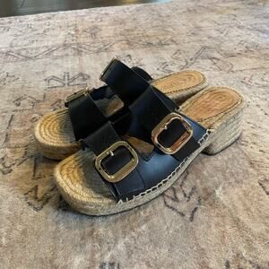 J. Crew Black Leather Double Strap Block Heel Espadrilles SZ 8 Made in Spain