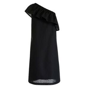 J Crew Women Black Linen/ Cotton Blend Sleeveless One Shoulder Dress