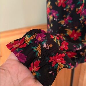 This sophisticated black blouse from J. Crew showcases a charming collar and long sleeves with ruffled accents. Its lightweight fabric and flowing fit make it a versatile piece for layering or wearing alone, adding elegance to any ensemble.