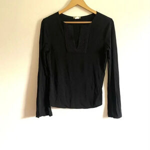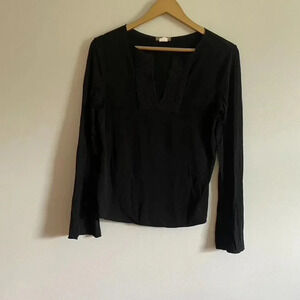 Black long sleeve top V neck with crochet detail Excellent preowned condition Size small