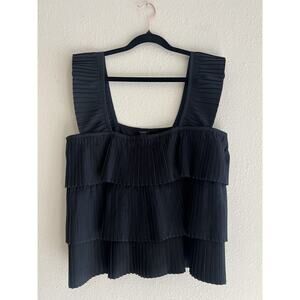 J. Crew Black Pleated Tiered Top Medium Sleeveless Coquette Preppy Feminine