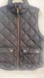 J. Crew Black Puffed Quilted Vest with Gold Accents, Size L, pre- owned, very good condition, no flaws, 100% polyester, body fill 70% down/ 30% waterfowl feathers, machine wash cold , approx measurements: pit to pit 21,5 inches, length from center of back to hem 26 inches, two front pockets, pet/ smoke free home, shipping next day, offers welcome!