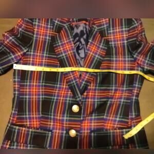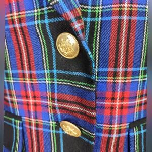 J. Crew Black Red Blue Nipped in Blazer Stewart Tartan Wool Blend Plaid Size 6