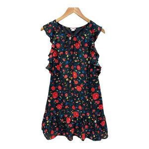 J. Crew Black Red Floral Flutter Sleeve Shift Dress Sz XS Romantic Feminine EUC