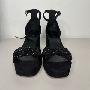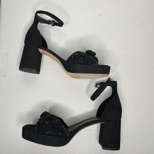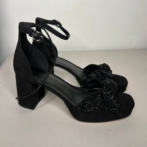 J. Crew Black Rhinestone Bow Platform Heels Size 11