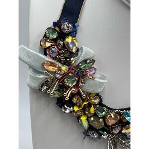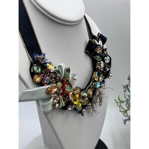 J. Crew Black Ribbon Funfetti AB Tinsel Sequin Floral Multicolor Bow necklace