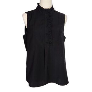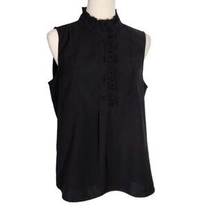 J. Crew Black Ruffle Trim Crepe Tank Top In Black Women's Size 8
