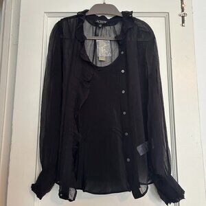 J. Crew Black Ruffle button-up shirt in crinkle chiffon - Size 0 - NWT