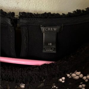 This elegant black tank top from J. Crew features a fitted silhouette with ruffled details, offering a sophisticated and stylish look. The sleeveless design and delicate lace accents make it perfect for both casual outings and dressier occasions.