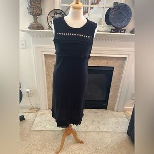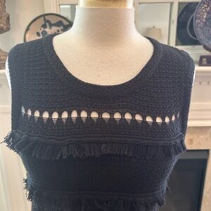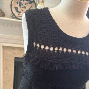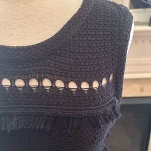 J. Crew Black Sheath Crochet Sweater Fringed Dress