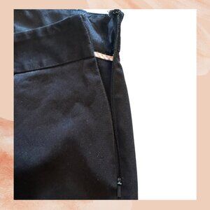 Pre-loved. Stretchy, black, cropped pants. Complete with side zipper, hook and eye clasp, belt loops and two faux back pockets.