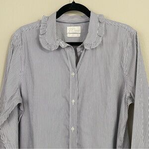 J. Crew Black Stripes Ruffle Collar Long Sleeve Classic Button Up Shirt Size 14