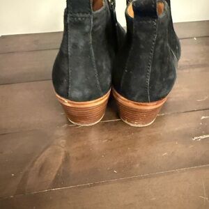 Keywords: J.Crew suede boots, black ankle booties, stacked heel boots, minimalist suede booties, casual chic shoes