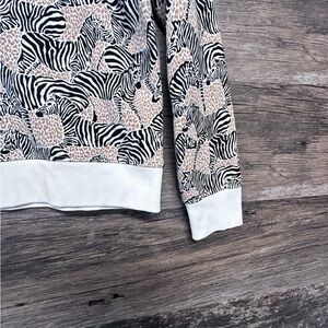 J. Crew Black Tan White Zebra Print Crewneck Sweatshirt