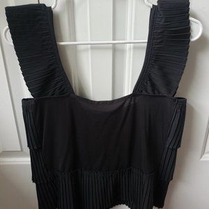 - Practically new, J.Crew Black Tank with a Fringe/Woven Pattern on arms, front, and back bottom portion