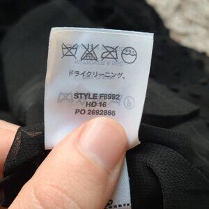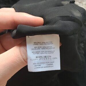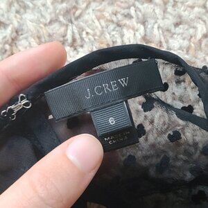 Add a touch of sophistication to your wardrobe with this J.Crew black top blouse. The textured Swiss clip dot ruffle design adds an elegant touch to the blouse, making it perfect for formal occasions, parties, or business meetings. The flutter sleeves and hook & eye closure provide a classic and preppy look, while the silk / cotton blend material ensures comfort and durability. This regular fit blouse is available in size 6 and is a must-have for any fashion-forward woman. Top is sheer at shoulders and lined below.
