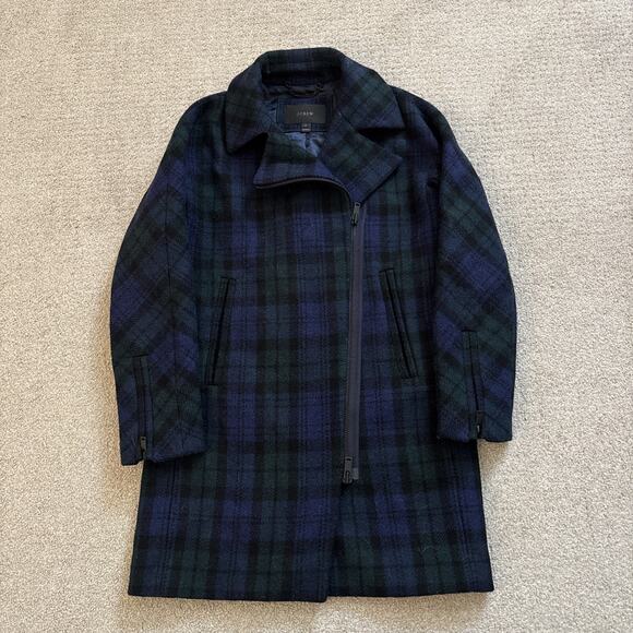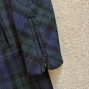 J. Crew Black Watch Tartan Wool Blue and Green Plaid Zip Up Winter Coat Size 0