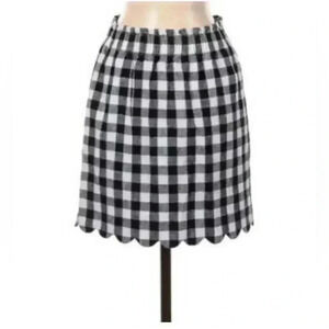 J. Crew Black & White Checked, Scalloped Edge, Size 6, Lined Mini Skirt, Pockets. Such an adorable skirt!! Good pre owned condition. Wide elastic waist band.