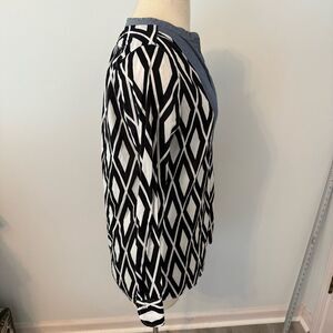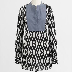 J. Crew Black & White Geometric Diamond Print Tunic with Chambray Bib Size Small