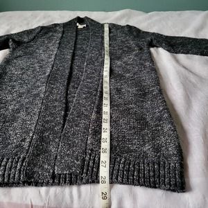 J. Crew, size S, black and white heather cardigan. Linen and cotton blend. Long sleeves. Long line. Ribbed hem and sleeve cuffs. Excellent used condition.
