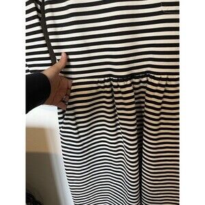 J Crew Black White Stripe Long Sleeve Fit And Flare Casual Mini Dress Size 12