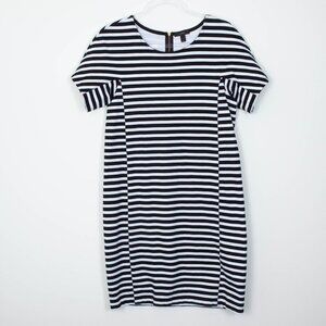 J. Crew Black White Striped Cap Sleeve Bodycon Dress Womens Size Medium