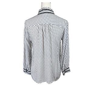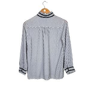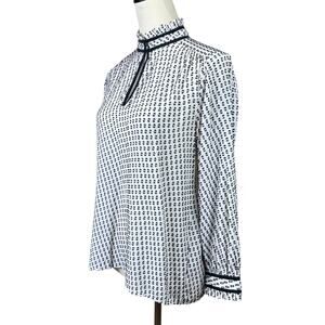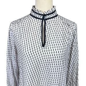 J. Crew Black & White Swiss Dot Silk Blend Long Sleeve Mock Neck Blouse
