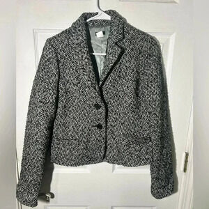 J. Crew Black White Tweed Herringbone Blazer Fully Lined Size 6