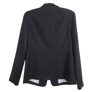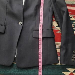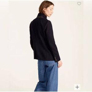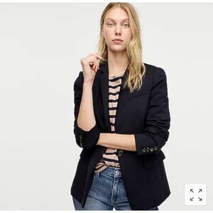 J. Crew black Wool Flannel Regent Blazer Jacket, popped collar, Single Button closure, slightly longer length, wool Spandex blend, pockets, fully lined, style B0323.