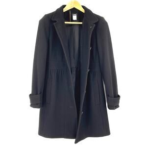 J Crew Black Wool Lady Day Coat Long Fit & Flare Pleated A-Line Topcoat Size 8 M