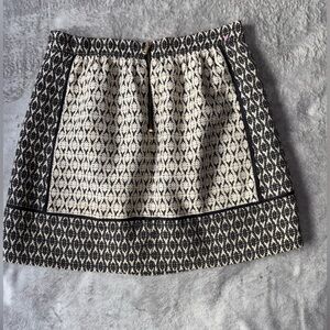 Chic mini skirt with a bold black and cream pattern. Perfect for stylish outings.