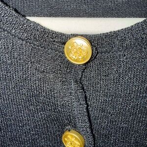This elegant top from J. Crew showcases a boxy silhouette with long sleeves, crafted in a striking black and gold color palette. The buttoned design adds a touch of sophistication, making it a versatile addition to any wardrobe.