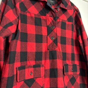 J Crew Black and Red Checkered Flannel Pullover Top Size Small