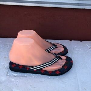 J Crew Black and Red Flip Flops with Striped Straps Shoes Size 7