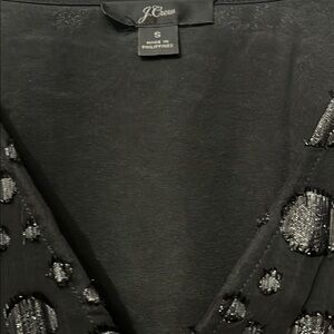 J. Crew Black and Silver Metallic Wrap Bishop Long Sleeve Top Small