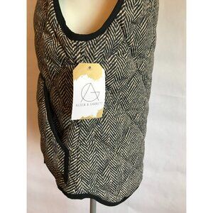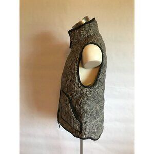J. Crew Black and Tan Chevron Print Zip-Up Quilted Puffer Vest, Size Small