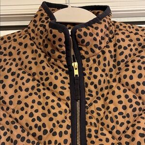Chic puffer vest with a bold pattern. Features front pockets and a secure zip closure. Ideal for layering.