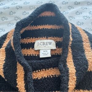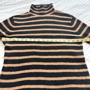 Elevate your wardrobe with this J. Crew striped roll neck sweater. Black and tan stripes offer a timeless look. Perfect for layering or wearing alone. Relaxed fit would definitely also fit a small.