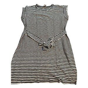 This J. Crew dress features a classic black and white stripe pattern, perfect for casual outings or resort wear. The short sleeves and crew neck add to its relaxed, comfortable style, while the sheath silhouette offers a flattering fit.