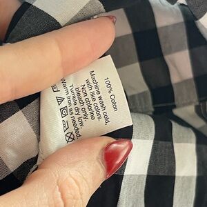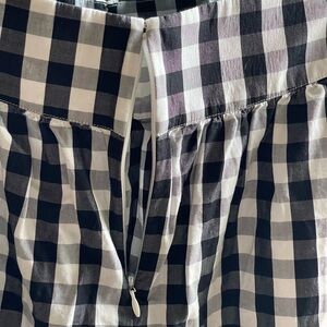 Great condition. • black and white gingham skirt • flowy, a-line fit • thick tie waist can be tied in the front or back • ruffle hem • back zip • 100% poplin cotton • preppy, gingham, classic, summer, picnic, party
