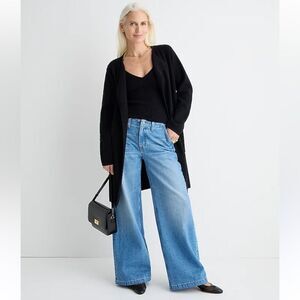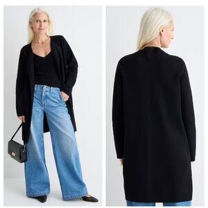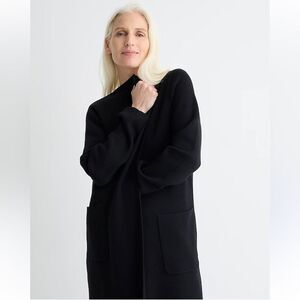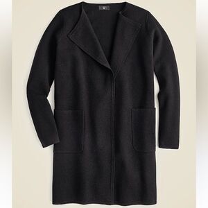 J Crew Women's Juliette Collarless Sweater Blazer in Black Size Small. Your new favorite multitasking layer: This features a mid length cut (so yes, it covers your bum), patch front pockets, an open cascading front and cozy knit fabric that toes the line between a cardigan and a jacket. Indoors or outdoors, we bet you won't want to take this one off.