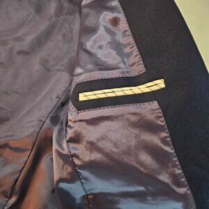 tags; J.Crew blazer, navy blazer, professional jacket, office wear, cotton blend blazer, tailored fit, buttoned blazer, business attire, classic blazer, lined blazer, preppy, academic, or nautical theme