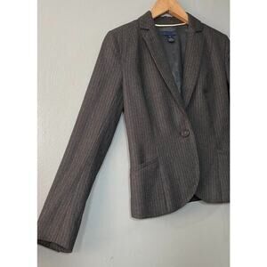 J Crew Blazer Womens Size 2 Gray Pinstripe Italian Wool Super 120s Jacket Office