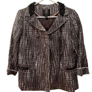J. Crew Blazer Womens 4 Collection Gray Double Breasted Beaded Dark Academia