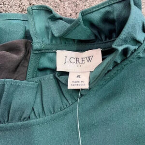 J Crew Blouse Green Sleeveless Ruffle Black Bow Tie Closure NWT Size Small