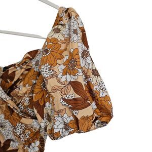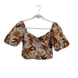 J. Crew Blouse Medium Brown Puff Sleeve Cotton Crop Top Zinnia Floral Boho Resortwear