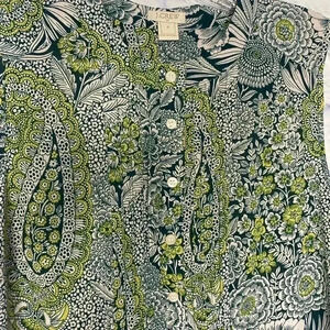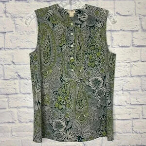 J. Crew Blouse Sleeveless Tunic Top Buttons Paisley Floral Botanical